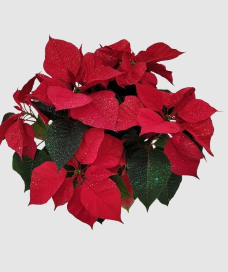Poinsettia ( ou étoile de Noël) rouge sans paillettes , plante emblématique des fêtes de fin d’années, avec son cache pot en zinc.